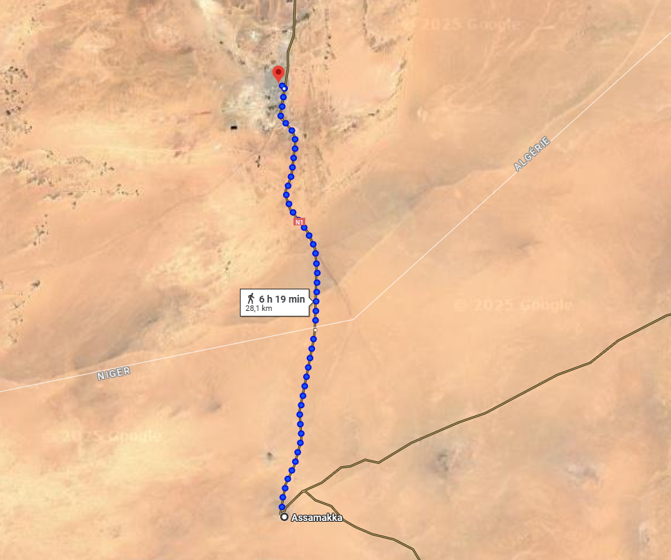 Los últimos kilómetros hasta Assamakka fueron interminables. La carretera, parecía desaparecer bajo la arena que el viento movía a un lado y a otro. Miraba al horizonte y no entendía cómo esa vía podía llevarnos a algún sitio. A los lados, el paisaje era puro desierto, sin vida, como si el mundo terminara ahí mismo. Dentro del vehículo, las caras de los demás pasajeros lo decían todo: ojos alerta, miradas perdidas, una mezcla de cansancio e inquietud. Nadie hablaba, porque todo el mundo estaba preocupado. ¿Qué nos esperaba al final de ese camino? Nadie lo sabía.